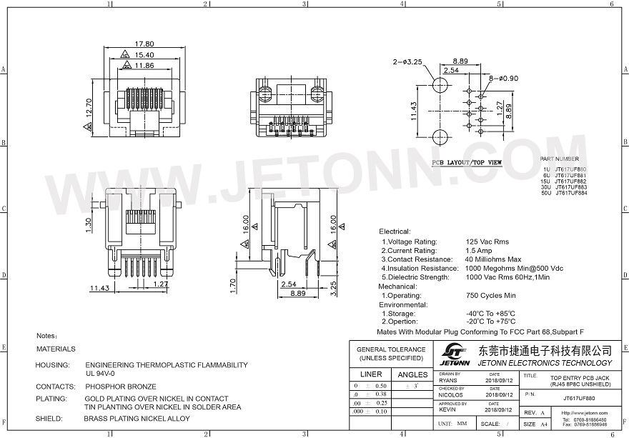 東莞市捷通電子科技有限公司 成立于2018年,是一家專業(yè)網(wǎng)絡(luò)通訊連接器及防水連接器制造商,主要從事連接器的研發(fā)、設(shè)計(jì)、生產(chǎn)、銷售以及模具開(kāi)發(fā)等服務(wù)!