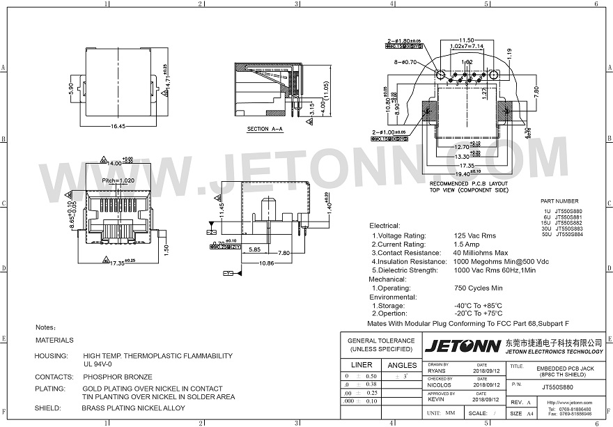 東莞市捷通電子科技有限公司主營沉板式RJ45插座等其他它精密連接器,我司擁有專業(yè)的生產設備和技術型人才,我們堅持匠心品質,持續(xù)改進,為客戶提供滿意的產品,歡迎廣大客戶前來咨詢:0769-81886480